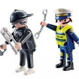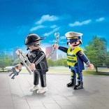 Freuen Sie sich auf aufregende Action mit dem Playmobil Duopack Polizist und Dieb. In diesem spannenden Set ist der Polizist mit einer Pistole und Handschellen ausgestattet, um den Einbrecher auf frischer Tat zu ertappen.