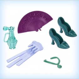 Anna trägt ein elegantes Kleid mit weichem Rock und geformtem Oberteil. Themenbezogene Accessoires (z. B. Fächer) runden ihren Look ab. Bewegliche Arme ermöglichen natürliche Posen beim Spielen.