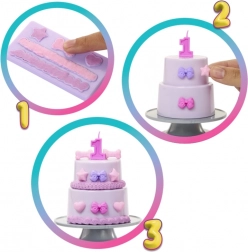 Ebenfalls dabei ist eine magische Look-Verwandlung – mit warmem oder kaltem Wasser erscheinen lustige „Party“-Details. Der kreative Teil des Sets umfasst Knete mit Formen zum Dekorieren der zweistöckigen Torte. Das alles in einer attraktiven Geschenkpräsentation, die direkt zum Auspacken der Überraschungen einlädt.