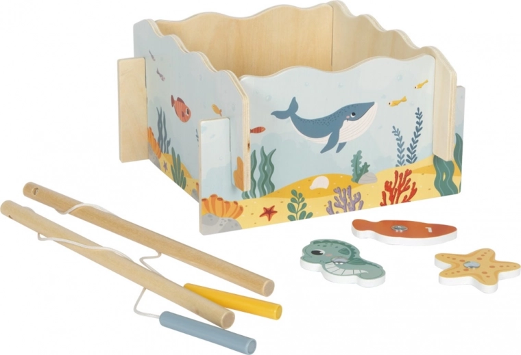 Das Angeln der Fische unterstützt die Feinmotorik, Hand-Auge-Koordination, Konzentration und Geduld – ideal für Kinder ab 2 Jahren.