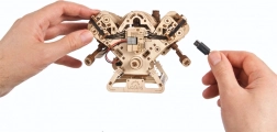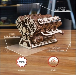 Das hölzerne mechanische Modell des V8‑Motors simuliert die Arbeit eines echten Achtzylinders: acht Zylinder mit rhythmischem Kolbenlauf, 16 Ventile gesteuert über Nockenwellen, ein Ventiltrieb mit einstellbarer Kette (32 Glieder) und Nebenaggregate, angetrieben von einem Schlangenriemen. Dank USB‑C‑Speisung oder manuellem Drehen genießen Sie realistische mechanische Bewegungen und verstehen die Prinzipien des Verbrennungsmotors besser.