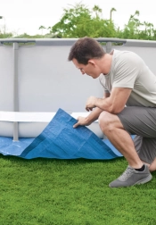 Die Bestway-Schutzunterlage ist die zuverlässige Basis für jeden Aufstellpool. Sie dient als Barriere zwischen Untergrund und Poolfolie, wodurch das Risiko von Rissen oder Abrieb minimiert wird und gleichzeitig dank zusätzlicher Isolierung der thermische Komfort des Wassers verbessert wird.