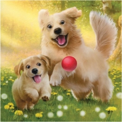 Illustrationen spielender Hunde auf der Wiese motivieren Kinder zum Puzzeln und fördern ihre Fantasie.