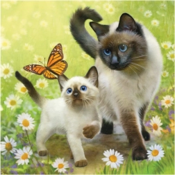 Die charmante Szene mit Katzen und einem Schmetterling lehrt Kinder, beim Puzzeln auf Details und Farben zu achten.