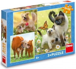 Dieses Set enthält drei separate Puzzles mit jeweils 55 Teilen, die Kinder mit fröhlichen Illustrationen von Hunden, Katzen und weiteren Tieren begeistern. Dank der stabilen Pappe sind die Puzzle ausreichend robust für häufiges Puzzeln und lassen sich leicht greifen.