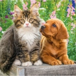 Genießen Sie gemeinsame Momente mit zwei wunderschönen Motiven von Hunden und Katzen im Garten. Jedes Bild besteht aus 48 stabilen Teilen, die passgenau ineinandergreifen und Kindern das Zusammensetzen erleichtern. Die Puzzles sind eine tolle Wahl für das erste eigenständige Puzzeln ebenso wie für gemeinsamen Familienspaß.