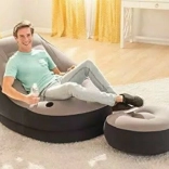 Bequemer aufblasbarer Sessel mit Fußhocker, ideal für den Einsatz zu Hause und im Freien. Er ermöglicht erholsame Momente in maximalem Komfort.