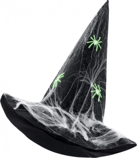 Verbessern Sie Ihr Hexenkostüm mit unserem Hut, der mit detailliertem Spinnennetz und leuchtenden Spinnen verziert ist, die Aufmerksamkeit erregen.