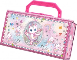 Das Schmuckkästchen in Form eines Koffers ist eine wunderschöne Möglichkeit, Kinderschmuck und Kleinigkeiten aufzubewahren. Kätzchendesign verleiht dem Schmuckkästchen eine Niedlichkeit, die kleine Kinder lieben.