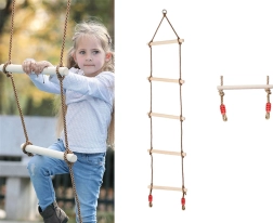 Die Seilleiter ist eine ausgezeichnete Wahl für aktive Spiele im Freien. Glatte Holzsprossen ohne scharfe Kanten bieten einen bequemen Griff und Sicherheit beim Klettern. Starke geflochtene Seile mit Sicherheitsknoten halten die Leiter auch bei intensiver Nutzung stabil.