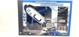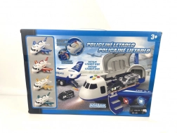 Polizeiflugzeug mit Ladefläche und 3 Autos ist ein fantastisches Spielset für Kinder. Es enthält ein Flugzeug mit Licht- und Soundeffekten und drei Metallautos im Maßstab 1:64.