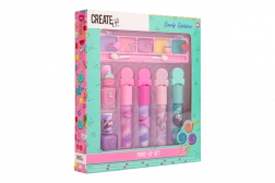 Das Schmink-Set Candy CREATE IT! bringt Spaß und Farbe ins Kinderschminken. Alles ist in einer attraktiven, von Süßigkeiten inspirierten Verpackung verborgen, die kleine Trendsetter begeistert. Dank der vielfältigen Farbpalette zaubern Kinder leicht zarte oder auffälligere Looks und fördern ihre Kreativität.