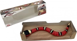 Die Robo Korallenschlange bietet Kindern ein realistisches Schlangenerlebnis in sicherer und unterhaltsamer Form. Dank intelligenter Sensoren orientiert sich die Schlange selbstständig im Raum, weicht Hindernissen aus und ändert sanft die Richtung. Die bewegliche Zunge und der Schwanz sowie die leuchtenden Augen verstärken den authentischen Eindruck.