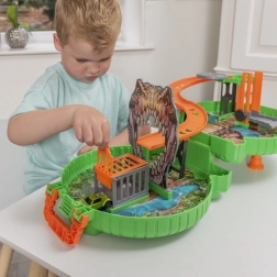 Mach dich bereit für Action mit dem tragbaren Dino-Set von TEAMSTERZ, das sich nach dem Öffnen in einen thematischen Spielplatz mit Strecke, Fallen und Rampen verwandelt. Kinder können das Auto von der Rampe starten, an einem Dino-Maul vorbeifahren und Fahrzeuge aus dem Käfig retten – alles in einem kompakten Koffer, der bereit für unterwegs ist.