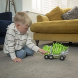 Der clevere Stauraum im „Brustkorb“ sorgt dafür, dass Lieblingsautos immer zur Hand sind. Dank der robusten Ausführung und der einfachen Bedienung ist das Spiel auch für kleinere Kinder sicher und flüssig.