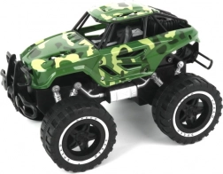 Genießen Sie actionreiche Rennen mit dem robusten Monstertruck im Tarnmuster-Design. Große Reifen, höhergelegtes Fahrwerk und eine stabile Kunststoffausführung meistern Hausstrecken und spielerische Hindernisse. Die Bedienung ist intuitiv – anschieben und das Auto fährt los.