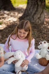 Hergestellt aus weichem und angenehmem Plüsch, wodurch dieser Hase ideal zum Umarmen und Kuscheln ist.
