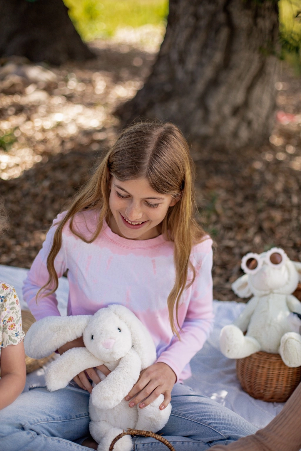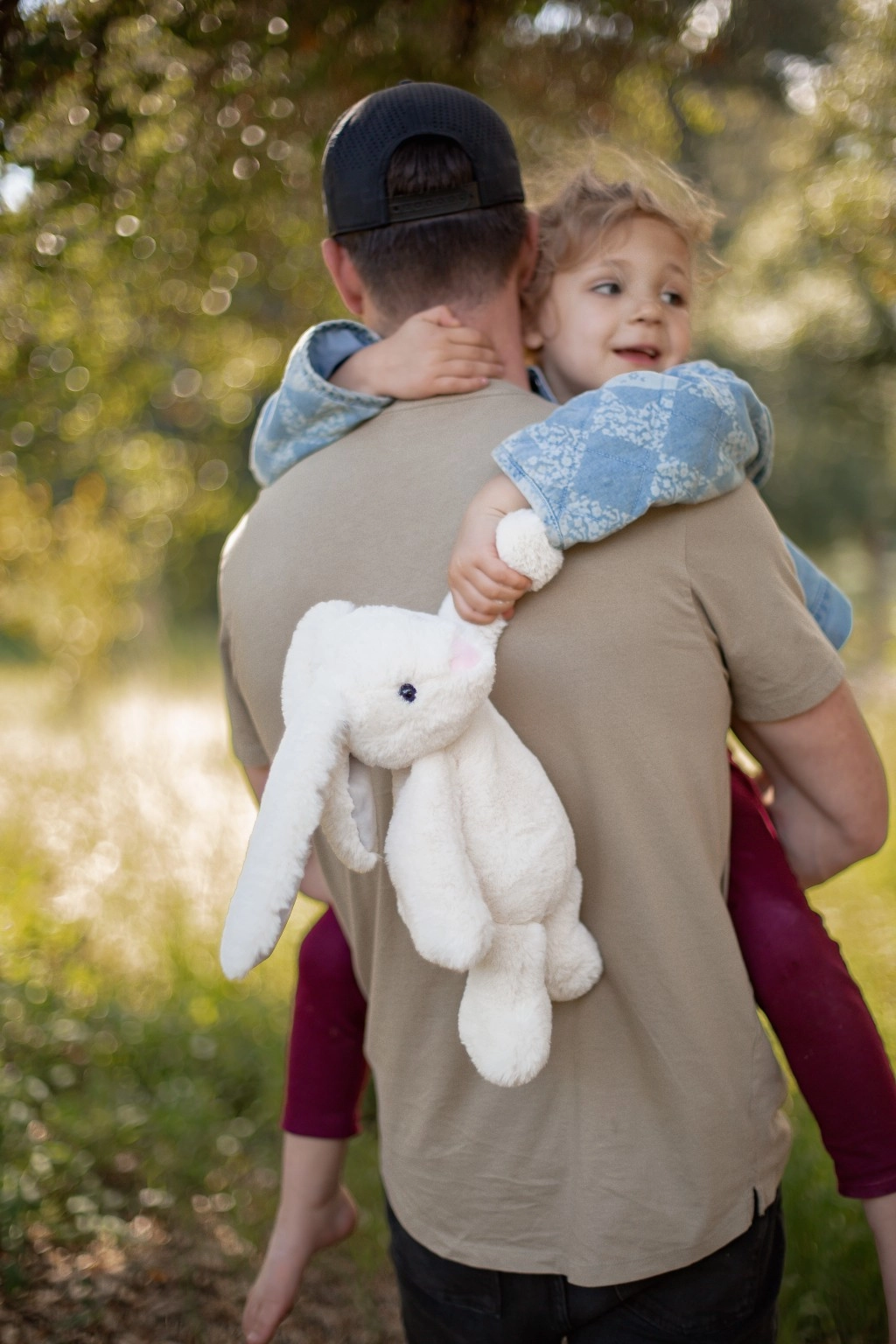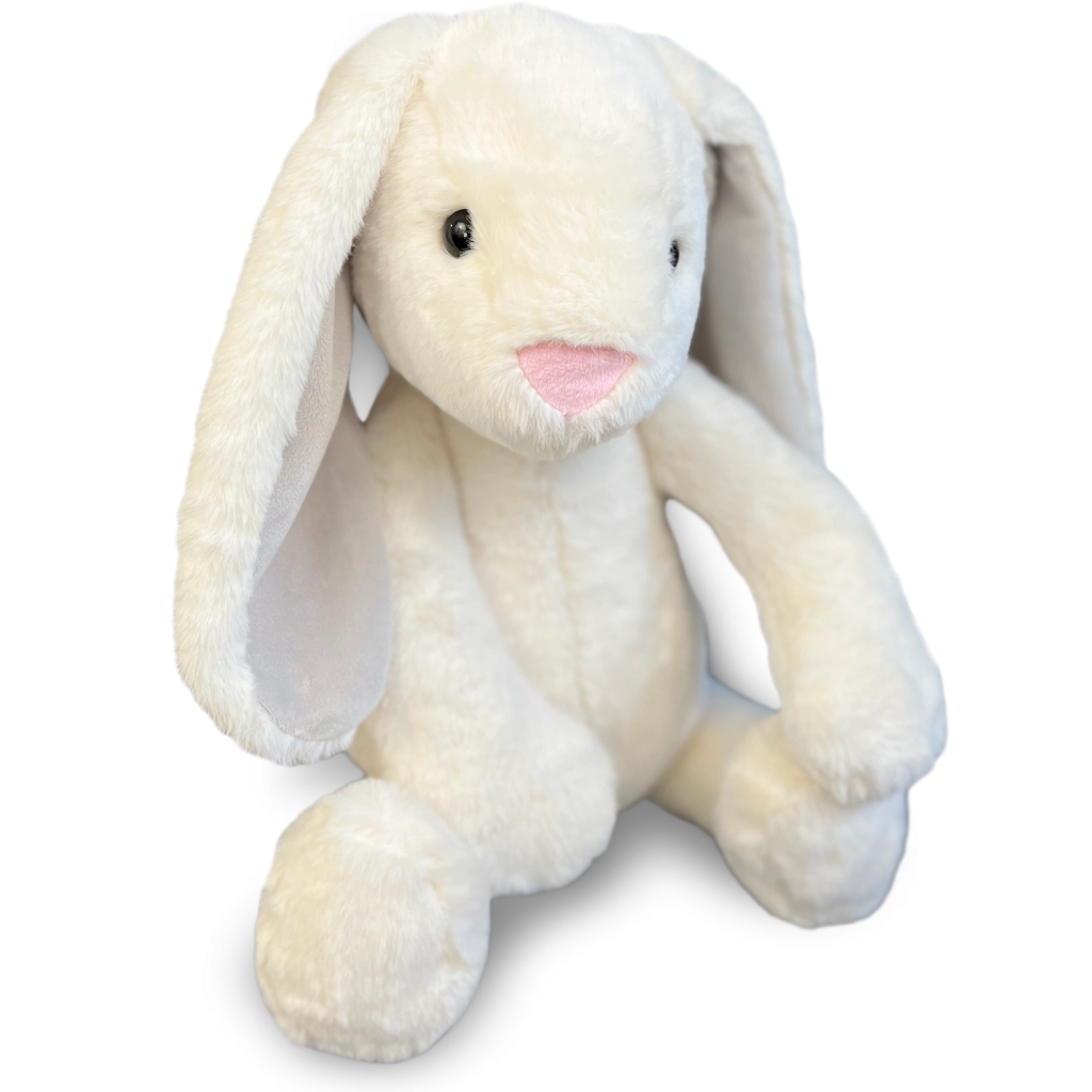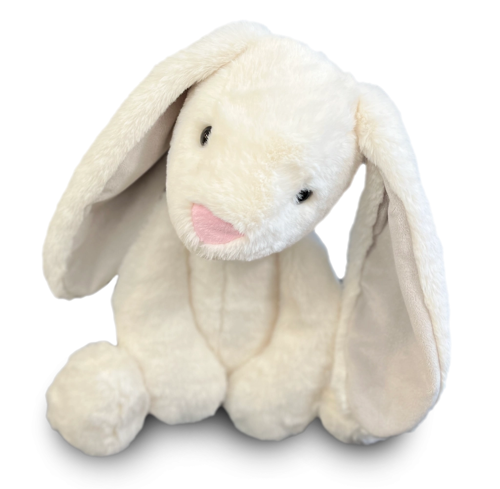 Mit einer Größe von etwa 41 cm ist dieser Hase groß genug, um Trost und gleichzeitig kompakt genug für den einfachen Transport zu bieten.