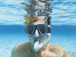 Die ergonomische Form von Maske und Schnorchel sorgt für festen Sitz ohne Komforteinbußen.