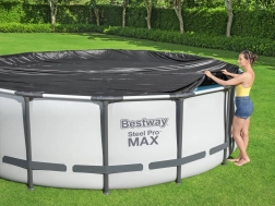 Die Poolabdeckung Bestway ist ein unverzichtbares Zubehör für jeden Poolbesitzer. Dieser Schutz bewahrt das Poolwasser vor Verunreinigungen wie Insekten, Vögeln, Laub oder kleinen Partikeln. Außerdem hilft er, die Wassertemperatur zu halten, minimiert das Abkühlen und sorgt für Komfort an kühleren Tagen.