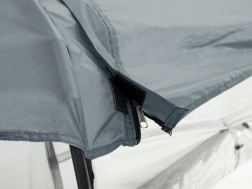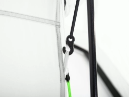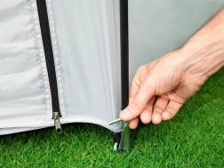 Glasfaserstangen, Abspannleinen und Heringe ermöglichen den Aufbau in etwa 30 Minuten. Die praktische Tasche erleichtert Transport und Lagerung.