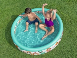 Der Pool mit den Abmessungen 122 cm x 25 cm und einem Fassungsvermögen von 140 Litern bietet ausreichend Platz zum Planschen, ohne viel Raum einzunehmen. Für Kinder über 2 Jahre unter Aufsicht eines Erwachsenen.