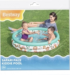 Das Kinder aufblasbare Planschbecken Safari Tiere von Bestway besteht aus hochwertigem und strapazierfähigem PVC, was eine lange Lebensdauer und Widerstandsfähigkeit gegen Beschädigungen garantiert. Mit drei aufblasbaren Ringen bietet es Stabilität und Komfort beim Spielen. Die weichen Wände sorgen für Komfort und Sicherheit bei den Wasserspielen Ihres Kindes.