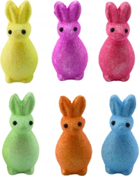Dieses dekorative Set umfasst sechs bezaubernde Häschen in Gelb, Blau, Rosa, Grün, Orange und Lila. Die Oberfläche mit feinem Glitzer zieht die Blicke auf sich und unterstreicht die frühlingshafte und österliche Stimmung in jedem Interieur. Dank des leichten Styropors sind die Dekorationen leicht zu transportieren und auch für Kinder sicher.