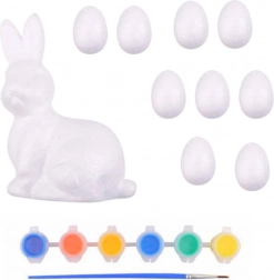 Unser Osterset ist ideal für Kinder, die gerne kreativ sind und Neues entdecken. Es enthält 9 Polystyrol-Eier und eine Hasenfigur, die sich dank ihrer glatten Oberfläche leicht bemalen und dekorieren lassen. Im Set finden Sie außerdem 6 Farbtöne – Rot, Gelb, Grün, Blau, Weiß und Schwarz.