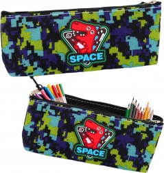 Kosmetiktasche mit Dinosaurier- und Pixelmuster ist ideal für Kinder, die den Weltraum und Dinosaurier lieben. Diese Tasche bietet ein einzigartiges Design mit leuchtenden Farben in einer Kombination aus Blau, Grün und Schwarz und ist ideal zur Organisation Ihrer Schreibutensilien.