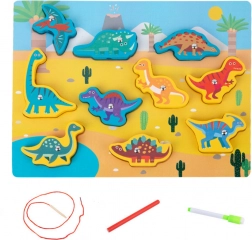Bildendes Holzpuzzle mit Dinosaurier-Motiv, das die Kreativität der Kinder und ihre manuellen Fähigkeiten fördert. Dank der magnetischen Elemente ist das Spiel attraktiv und bietet zusätzliche Herausforderungen.