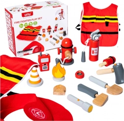 Das vollständige Feuerwehrset für Kinder enthält alles, was ein junger Feuerwehrmann braucht, um sich wie ein wahrer Held zu fühlen. Eine großartige Geschenkidee, die die kreative Entwicklung und manuelle Fähigkeiten von Kindern fördert.