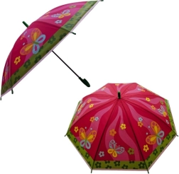 Schmetterlinge, Eulen, Haie und Marienkäfer – der bunte Motivmix macht den Regenschirm zu einem beliebten Begleiter bei Regen. Die Variante wird je nach Verfügbarkeit ausgewählt.
