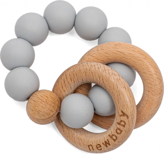 Beißring New Baby grau verbindet natürliche Materialien mit einem sicheren und funktionellen Design, ideal zur Beruhigung gereizter Babys ein.