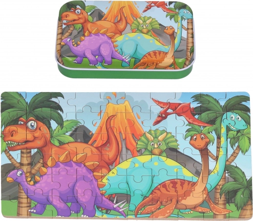 Entdecken Sie das unterhaltsame Puzzle mit 60 Teilen, versteckt in einer eleganten Metallbox, ideal für Kinder und Erwachsene.