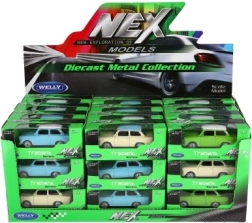 Dank Freilauf rollt das Auto sanft über glatte Flächen und die öffnenden Türen erhöhen Authentizität und Spielspaß. Das Modell ist in einem Farb-Mix erhältlich (z. B. Blau, Beige, Grün) und wird in einer Geschenkbox der Serie NEX Models geliefert.