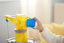 Ein echter drehbarer Kran mit zusätzlichen Greifern zum Heben und Senken von Objekten, der Kinder für interaktives *Spielen* begeistert.