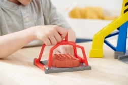 Ermöglicht es Kindern, eigene Bauklötze mit kinetischem Sand zu erstellen. Kinder können mit der durch den roten Hebel betätigten Presse eigene Konstruktionen erstellen und verarbeiten.