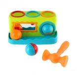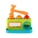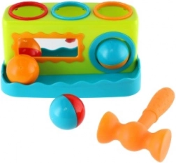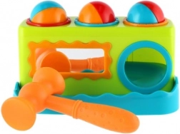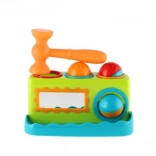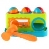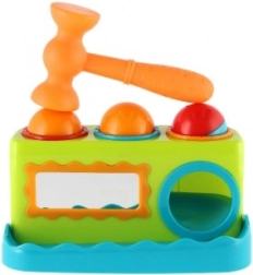 Diese farbenfrohe Klopfbank aus Kunststoff mit einer Länge von 21 cm ist eine hervorragende Wahl für die ersten entwicklungsfördernden Spiele. Mit dem Hämmerchen schlagen Kinder sicher drei Bälle in die vorgesehenen Öffnungen und trainieren dadurch Griff, Kraft und Genauigkeit. Der integrierte Spiegel an der Vorderseite steigert Interaktion und Spielspaß.