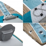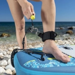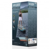 Das Board bietet vielfältige Möglichkeiten zur Aufbewahrung von Ausrüstung – vorderes und hinteres elastisches Bungee, mehrere D-Ringe sowie ein Flaschenhalter mit verstellbarem Gummi. Die rutschfeste Diamant-Deckschicht sorgt für einen sicheren Stand, und das Kick-Pad erleichtert Wendemanöver. Enthalten ist eine schnell lösbare, spiralförmige Leash für sicheres Nutzen.