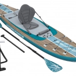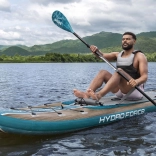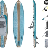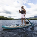 Das aufblasbare SUP HYDRO-FORCE Freesoul Elite 2-in-1 kombiniert den Komfort eines Paddleboards mit den Vorzügen eines Kajaks. Die breite Form bietet Anfängern wie Fortgeschrittenen viel Sicherheit, und die Tragfähigkeit von 150 kg erlaubt, Ausrüstung für längere Touren mitzunehmen. Dank der festen FortiFiber-Drop-Stitch-Konstruktion und der längs verlaufenden Tritech-Verstärkung erhalten Sie eine Steifigkeit wie bei einem Hardboard – mit dem Vorteil des einfachen Transports im Rucksack.