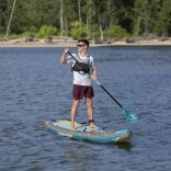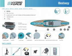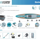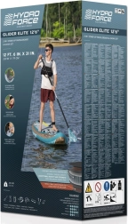 Hydro-Force Glider Elite ist für lange und reibungslose Fahrten auf ruhigem Wasser konzipiert. Seine schmale Form sorgt dafür, dass auch größere Entfernungen mühelos bewältigt werden können. Das Paddleboard kann dank des abnehmbaren Sitzes und der verstellbaren Paddellänge in ein Kajak umgewandelt werden. Zusätzlich ist ein bequemer Sitz und eine Pumpe für einfaches Aufblasen im Set enthalten.