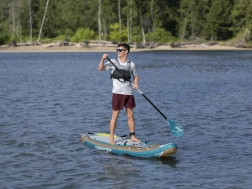 Einfache Lagerung: Nach dem Gebrauch lässt sich das Paddleboard leicht zusammenfalten und im mitgelieferten Rucksack verstauen. Dank des einfachen Luftablasses kann das Paddleboard schnell zusammengefaltet und zum nächsten Ziel gebracht werden.