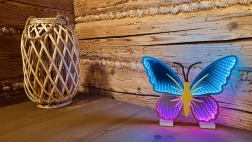 Die stilvolle dekorative LED-NEON-Lampe Schmetterling erhellt Kinderzimmer, Schlafzimmer und Wohnzimmer mit einem sanften, farbigen Schimmer. Sie ist für die Nutzung im Innenbereich konzipiert und kombiniert ein modernes Erscheinungsbild mit praktischer USB-Stromversorgung – ganz ohne Batteriewechsel.
