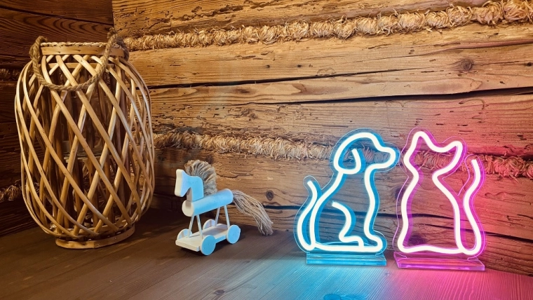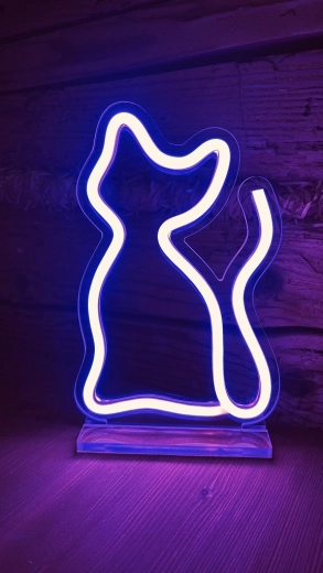 Die LED-Neonlampe Katze bringt angenehmes Ambientelicht und modernes Design in jeden Raum. Der transparente Standfuß und die klaren Konturen setzen einen eleganten Akzent, der in jedes Interieur passt – vom Kinderzimmer bis hin zu Büro oder Café.