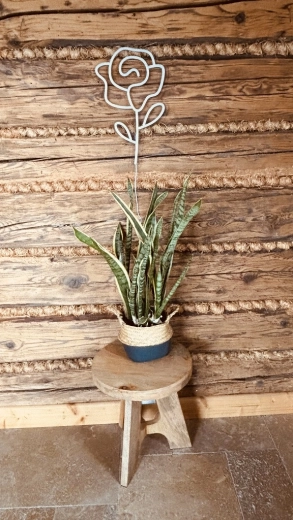 - Rosen-Design: pinke Blüte mit grünem Stiel – modern und verspielt.