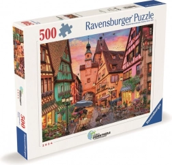 Bunte Fachwerkhäuser, eine ruhige Gasse und Cafés schaffen eine harmonische Szenerie, die dazu einlädt, jedes Teil zu vervollständigen.