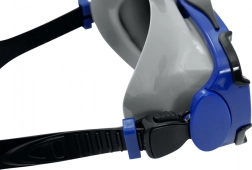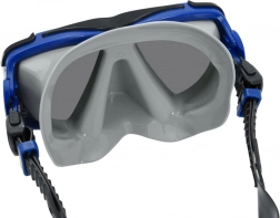 Die Maske mit verstellbarem Band und weicher Silikondichtung passt sich der Gesichtsform an und sitzt sicher, auch bei längeren Schwimmeinheiten. Das ergonomische Silikon-Mundstück liegt angenehm im Mund.