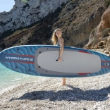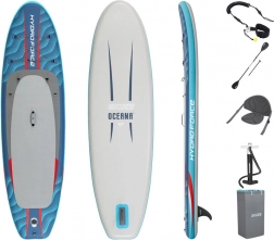 Das Modell OCEANA 2-in-1 vereint Komfort, Stabilität und Vielseitigkeit. Das robuste FortiFiber-Drop-Stitch-Material mit tausenden inneren Fasern verleiht dem Board eine hohe Steifigkeit, vergleichbar mit Hardboards, bei gleichzeitig geringem Gewicht und einfacher Lagerung. Die rutschfeste Diamant-Deckauflage sorgt für sicheren Stand und Kontrolle – auch für Einsteiger.