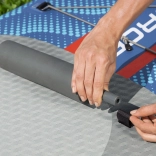 Drei abnehmbare Finnen und die rutschfeste Deckauflage erleichtern das Halten der Richtung und geben sicheren Stand auf ruhigem Wasser und bei leichtem Wellengang.